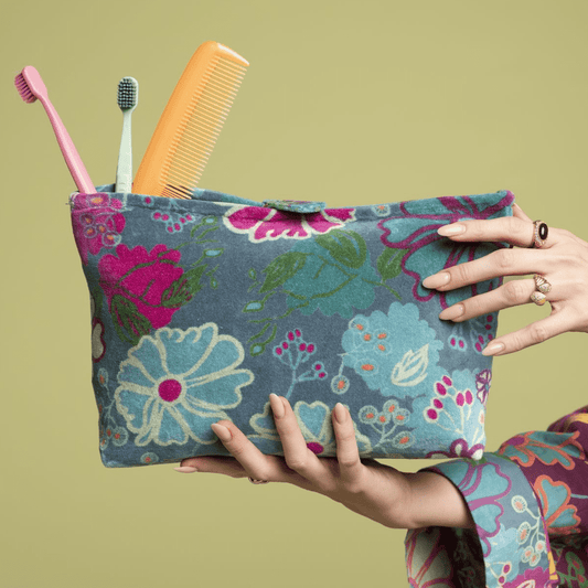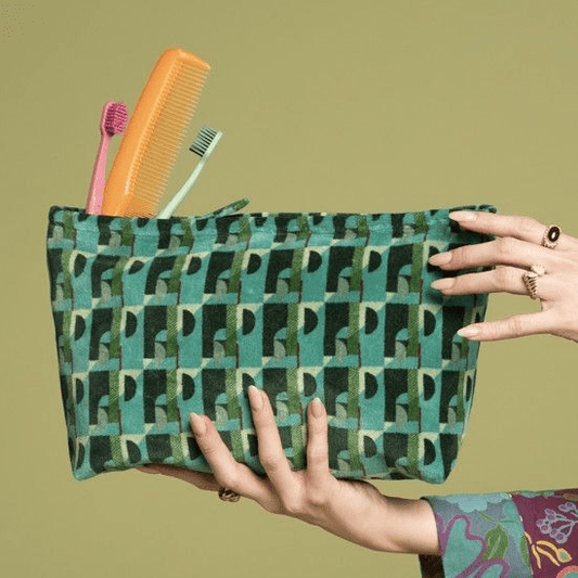 Printed Cotton Velvet - Washbag - Gracious Biscay Green