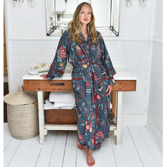 Women’s Cotton Dressing Gown - Grey With Fruit
