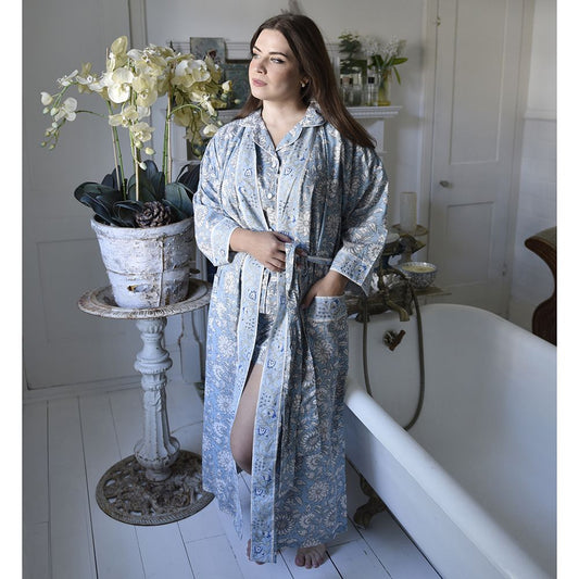 Women’s Cotton Dressing Gown - Pale Blue With Cornflowers