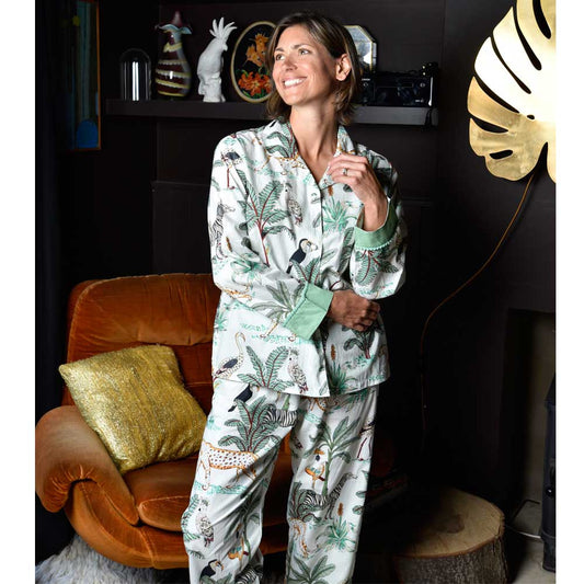 Women’s Cotton Pyjamas - Blue & White Toile de Jouy