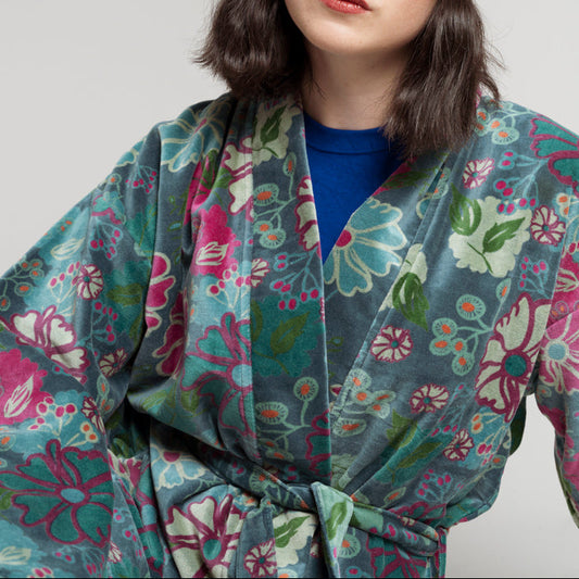 Women’s Cotton Dressing Gown - Grey With Fruit