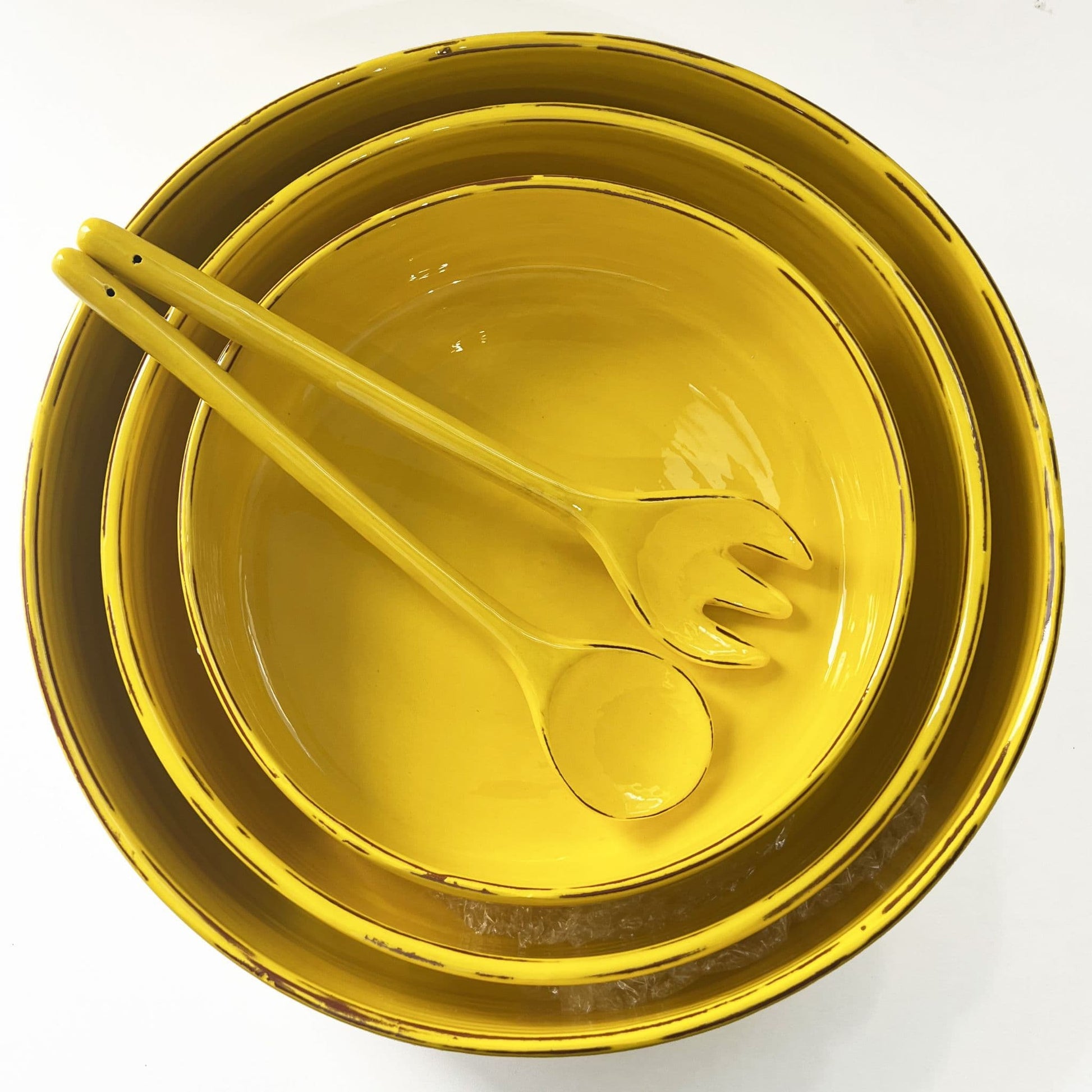 Handmade for us in the South Of France these bowel take months, but they are well worth the wait. We named them Salad 'Wheel' Bowls, as they look like wheels of cheese when stacked on top of each other.