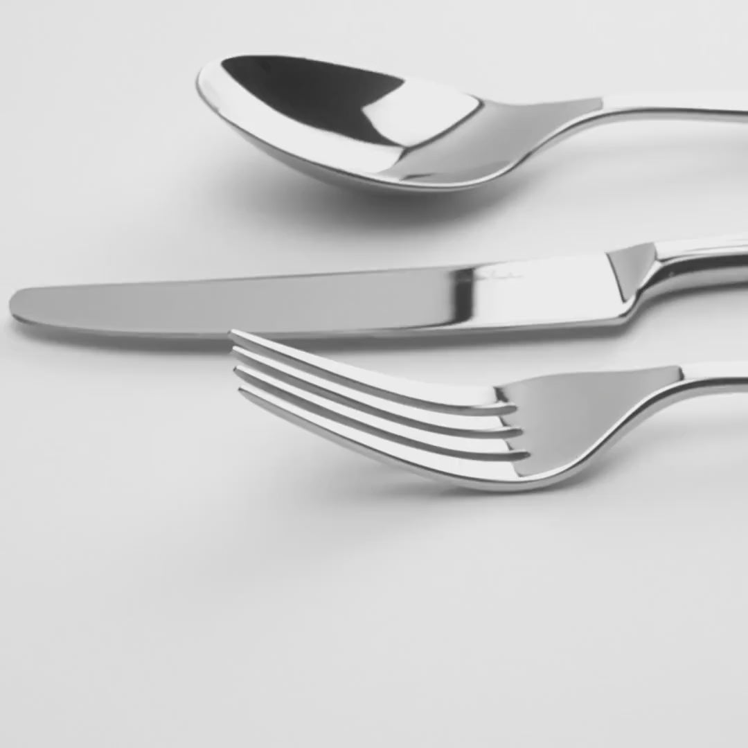 Palm Bright cutlery takes its inspiration from the pattern of the leaves on the tropical tree. The long inscribed flutes dividing up each handle draw on this, playing with the distribution of light and shade. These features are soft in the hand whilst enhancing the elegant profile of each classically proportioned piece on the table.